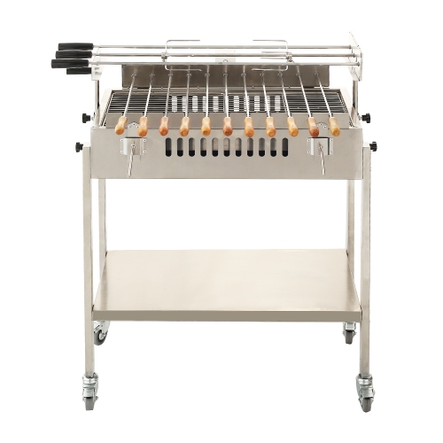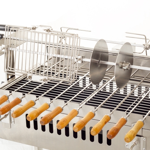The Charcoal cyprus bbq grill can meet all the needs of Cyprus / Brazil barbecue lovers. We have designed a stainless steel cover to ensure the temperature of the food. Below, there are also 11 skewers made of stainless steel that are also rotated by the same type of gearbox with an electric motor that is powered by a DC power supply and whose speed is adjustable. Speed control ensures you are in control.