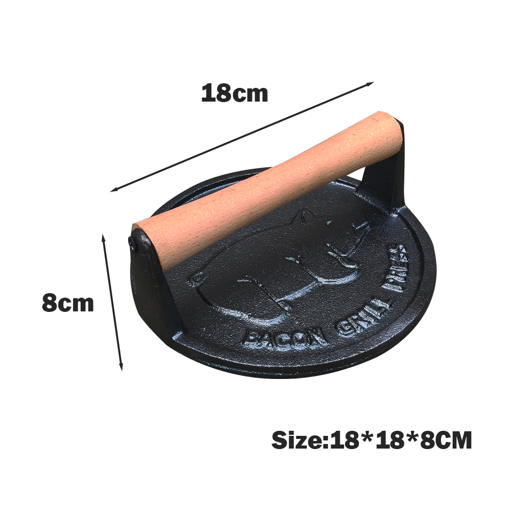 Our Heavy Duty Round Cast Iron Press Baking Meat Patty Tool is engineered and produced by a seasoned bbg grill manufacturer with decades of expertise in cast iron cookware and outdoor cooking gear. The manufacturer uses premium, food-grade cast iron for the press’s body—material that’s thick enough to withstand heavy use (even in busy commercial kitchens) and retains heat uniformly, so each patty cooks at the same temperature.