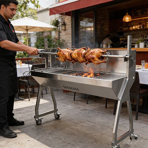 Elevate your outdoor cooking game with the stainless steel electric rotisserie grill—the ultimate outdoor rotisserie grill and professional-grade spit roast machine designed to deliver restaurant-worthy spit roast results in your backyard, patio,  Blendin
