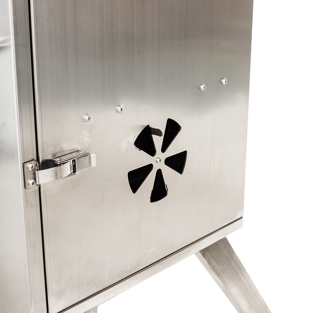 and adjustable air vents to control temperature and smoke intensity.